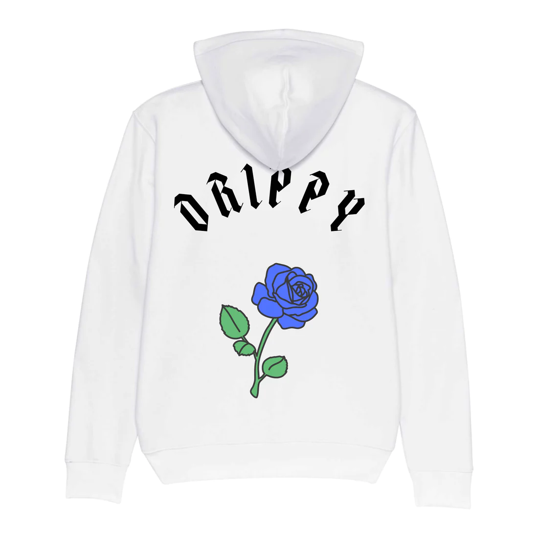 Stay comfy and stylish with Drippy Milano's cotton-blend hoodie in white with a blue rose. Get the perfect fit with our size recommendations and enjoy the super soft, environmentally friendly fabric. Shop now.