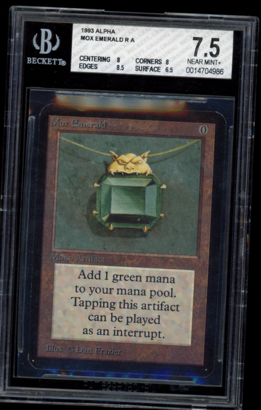 Product Details Mox Emerald Alpha graded by Beckett at 7.5 (Near Mint) Add 1 green mana to your mana pool. Tapping this artifact can be played as an interrupt. Rarity:R Card Type:Mono Artifact