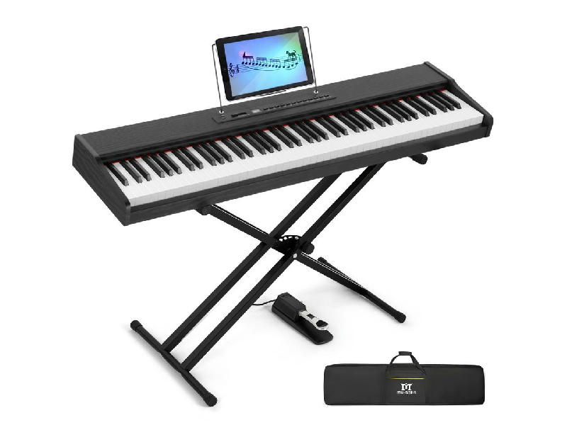 Mustar 88-Key Electronic Digital Piano, Semi Weighted Keys, MDF, Double tube Stand, MIDI USB, Storage Bag, Sustain Pedal, Power Supply, Built-in speaker (Black)