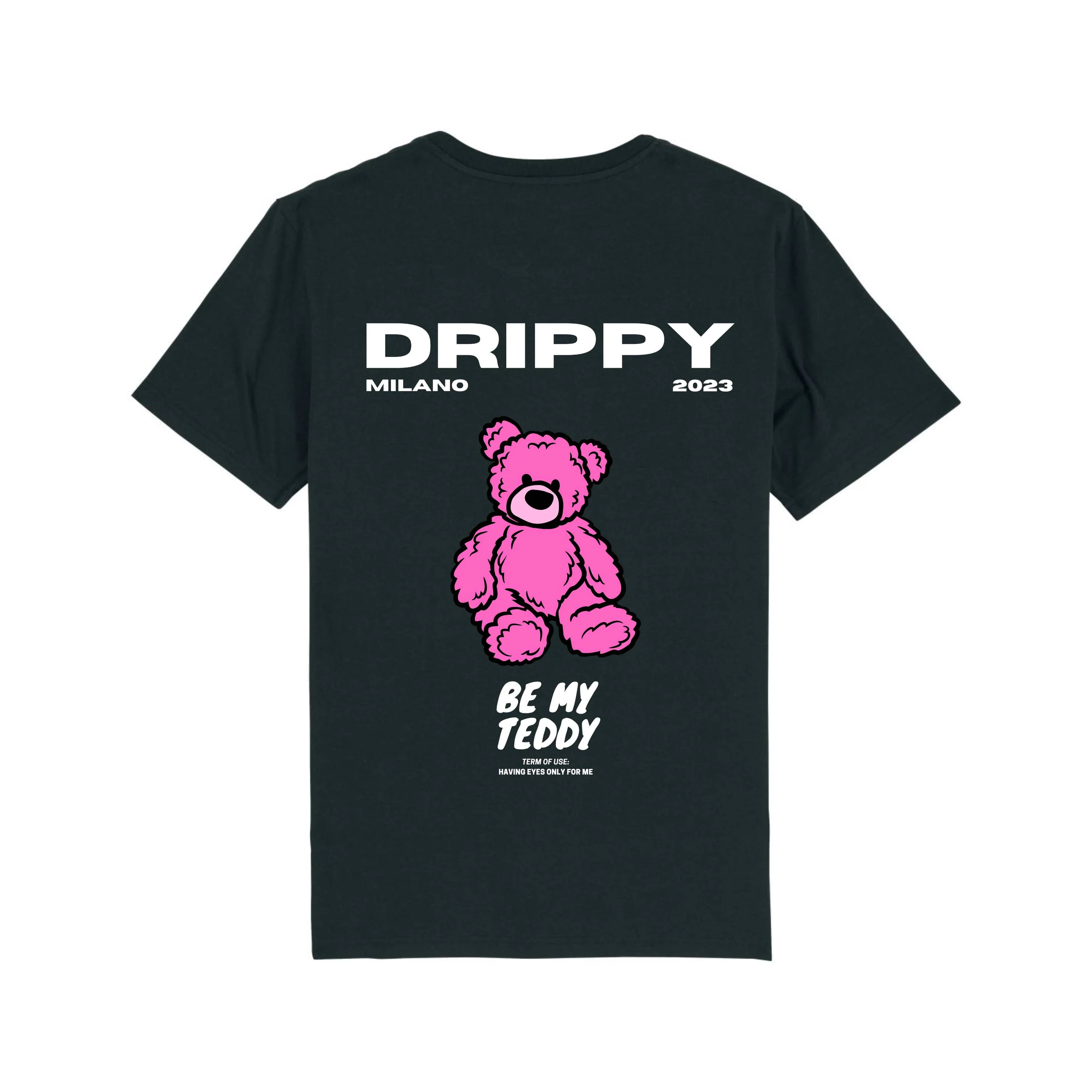 Shop for the ultimate black cotton jersey T-shirt with a pink teddy from Drippy Milano. Made with super soft organic cotton and designed with gender-free sizing, this eco-friendly and vegan tee is perfect for any wardrobe. Get it in regular or relaxed fit.