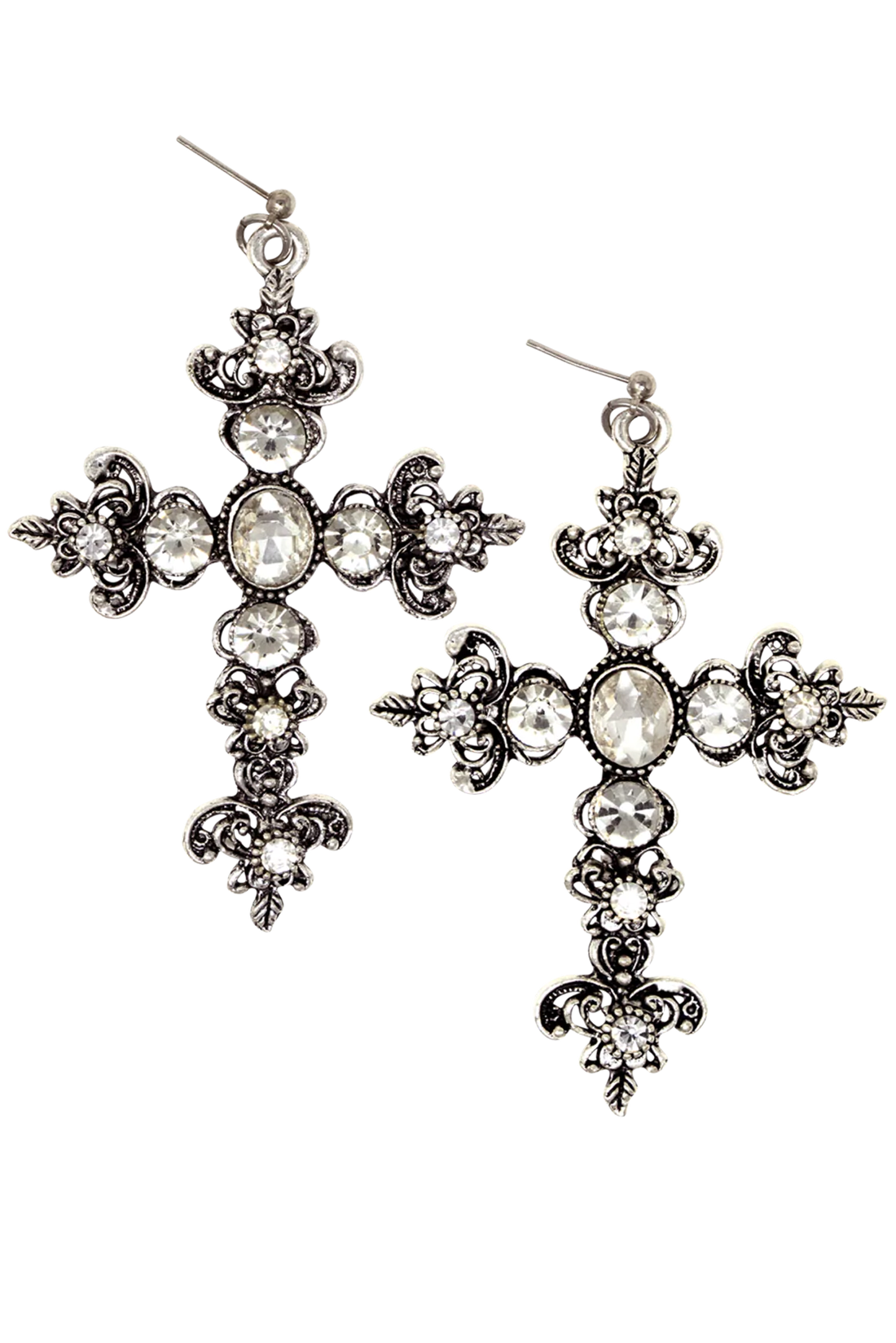 SILVER CRYSTAL CROSS EARRINGS
